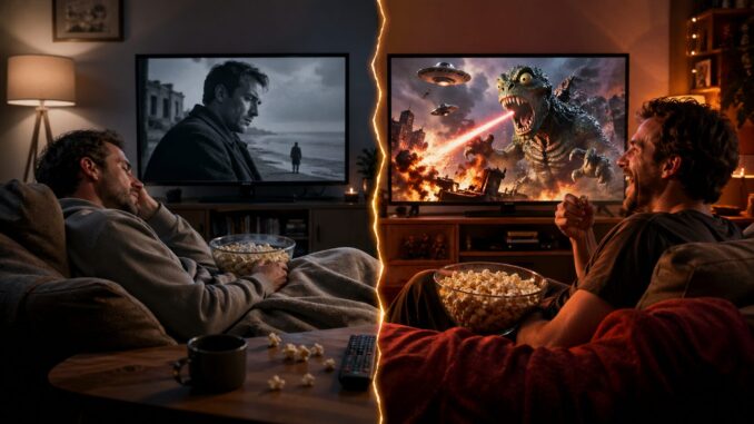Für viele Männer ist der Feierabendfilm kein Kunstgenuss, sondern Erholung. Der Kopf soll leer werden, nicht gefordert. Ein Film, der keine intellektuelle Auseinandersetzung verlangt, erfüllt diesen Zweck oft besser als ein Oscar-Kandidat, der nachdenklich stimmt, aber nicht entspannt.